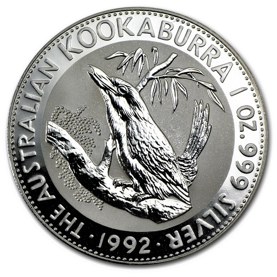 The Perth Mint Australian Silver Kookaburra coins are a striking tribute to one of Australia’s native animals. Featuring the iconic Kookaburra, the Australian Silver Kookaburra coin is loved by investors and collectors alike for its fine Silver content and stunning designs. Silver Kookaburra coins minted by the Perth Mint offer an unrivaled combination of quality and fascinating yearly changes in designs, making them one of the most interesting coins to own in your Precious Metal portfolio. The name "Kookaburra" is a loan word from the Wiradjuri language "Guuguubarra".